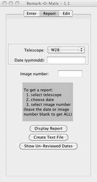 - Enter an image number or just leave this box blank in order to get remarks for all of the images for the night or nights selected in step 3.
