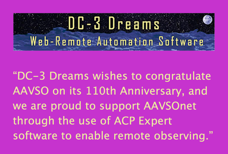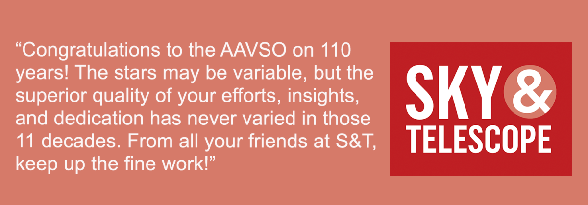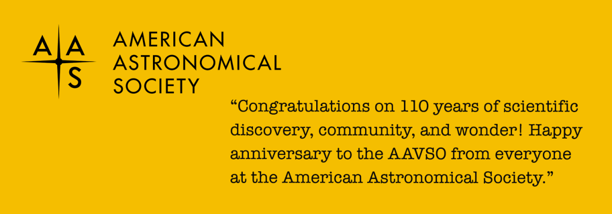 Thanks to each of you who have been involved in AAVSO programs, observing, and more! You are contributing to 110 years of citizen and professional astronomy and collaborations!