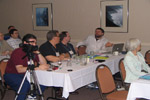 Bob Stine, Richard Huziak, Gilbert Lubcke, Dean Chandler, Pamela Gay, Pebble Richwine, Mike Simonsen, and Chris Stine at the Banquet. |
