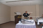 Gary Walker gives the CCD Committee report in front of a photograph of a beautiful Bald Eagle taken by AAVSO former president/photographer/bird-watcher Dan Kaiser. |