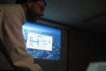 AAVSO staff member extraordinaire Aaron Price helps Vance get ready for his talk. |