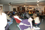A packed room at the Lockwood Observatory awaits the public lecture by John Percy. |