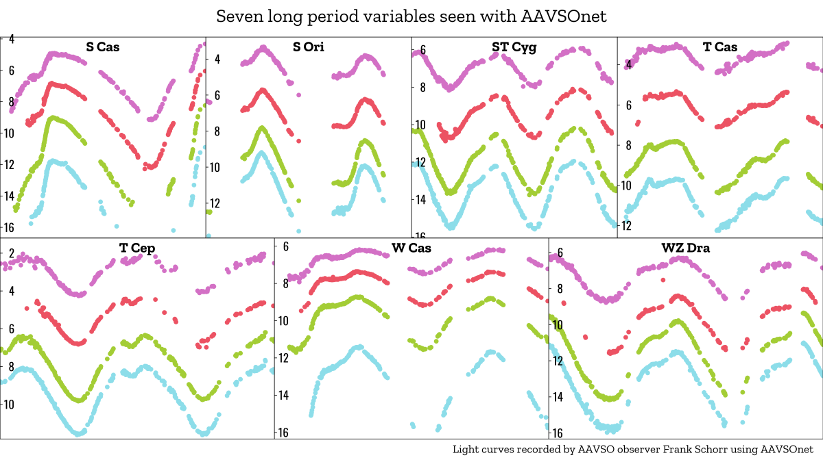 In addition, AAVSOnet depends heavily on the time, money, and hardworking dedication of many volunteers, including site managers (Greg Bolt, Dave Cowall, John Gross, Arne Henden, Peter Nelson, and Bill Stein), telescope operators, image inspectors, and IT/pipeline developers. It is thanks to these volunteers’ invaluable efforts that AAVSOnet thrives today, giving the gift of data to variable star enthusiasts all around the world.