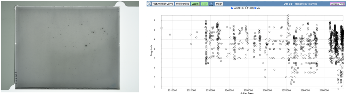 DASCH will facilitate “time-domain astronomy” science—the study of how astronomical objects change with time—by supporting the production of lightcurves with 0.1 magnitude uncertainties over 100-year timescales, in the same way the AAVSO’s Light Curve Generator (LCG2) can draw upon the organization’s vast archives to plot both current and historic observations. Indeed, LCG2’s range exceeds DASCH, as it includes large numbers of transcribed records, some dating as far back as the sixteenth century.