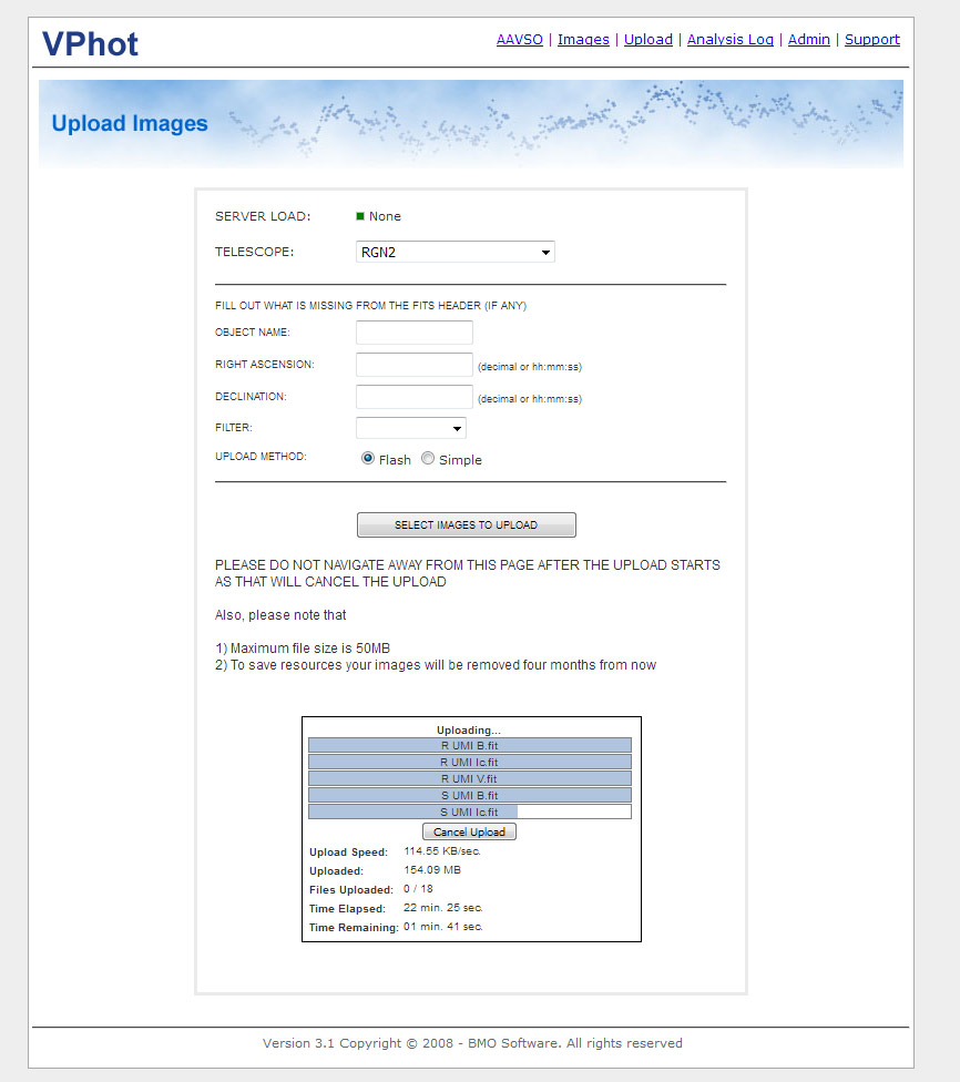 A number of people have noted issues with file uploads to VPhot, behavior different than they experienced in the past.