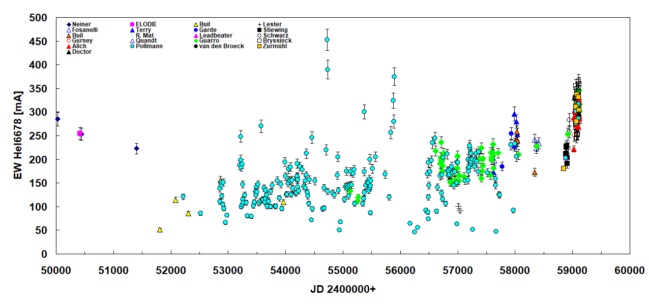Can I suggest for completeness that observers also consider submitting their spectra to the Pro-Am Be star database BeSS which currently has 8989 spectra of this star covering from 1978 to the present day.