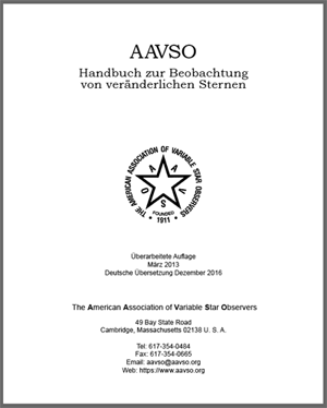 A German translation of the AAVSO Manual for Visual Observing of Variable Stars is now available.