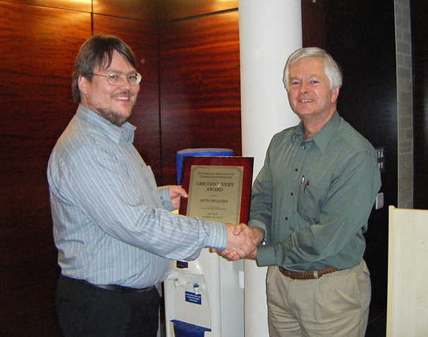 This award is given to an amateur astronomer for the discovery of a gamma-ray burst optical afterglow.