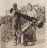 I got my start in astronomy eight years before I was born. In 1931 my father, Walter (on the left), and his cousin Paul Kuhlmann made a 7" reflector from scratch. This was before kits were commercially available. An article in Scientific American got them started. They ordered two blanks and an eyepiece, but made everything else from what they could find on their Kansas farm. The base was a stove; the RA and Dec shafts were two halves of a Model-T axle; the gears and drive motor came from a Victrola player; and the tube was a silage pipe. It was all very non-portable. By the time I was born only the tube assembly survived. Through this scope I got my first enhanced looks at the heavens. These views were the start of six decades of astronomical joy and adventure. I am grateful for the resourcefulness of my Dad and Uncle Paul.