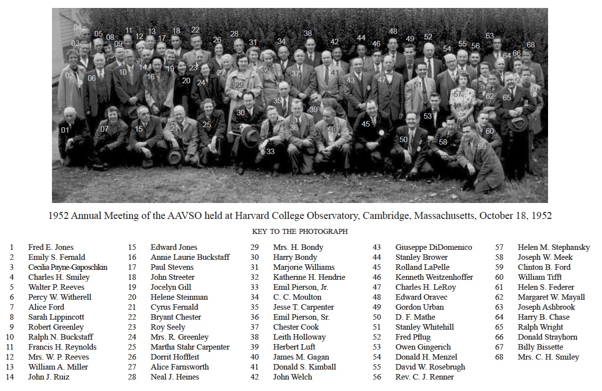 1952 Annual Meeting at Harvard College Observatory, Cambridge, Massachusetts key |