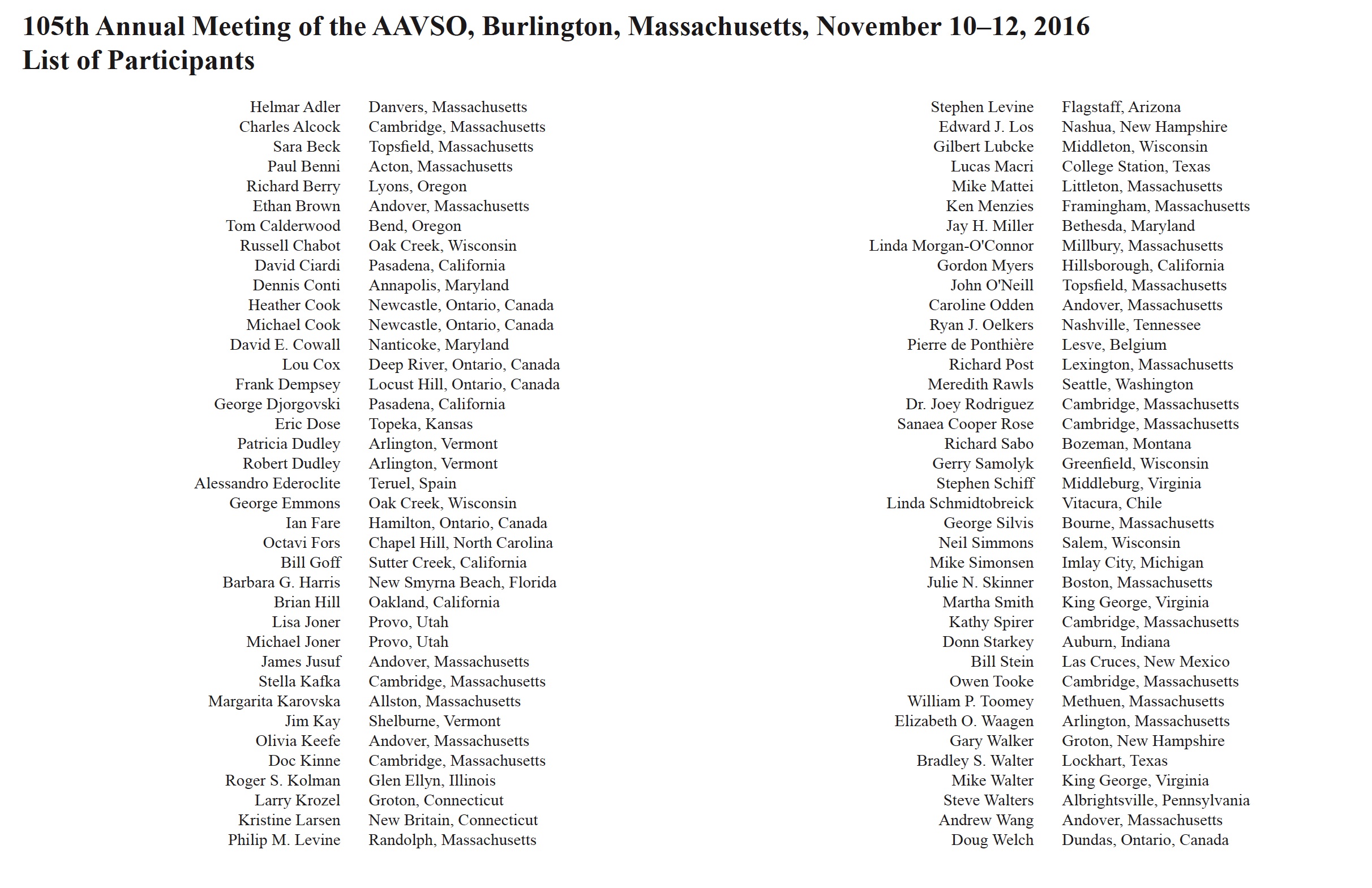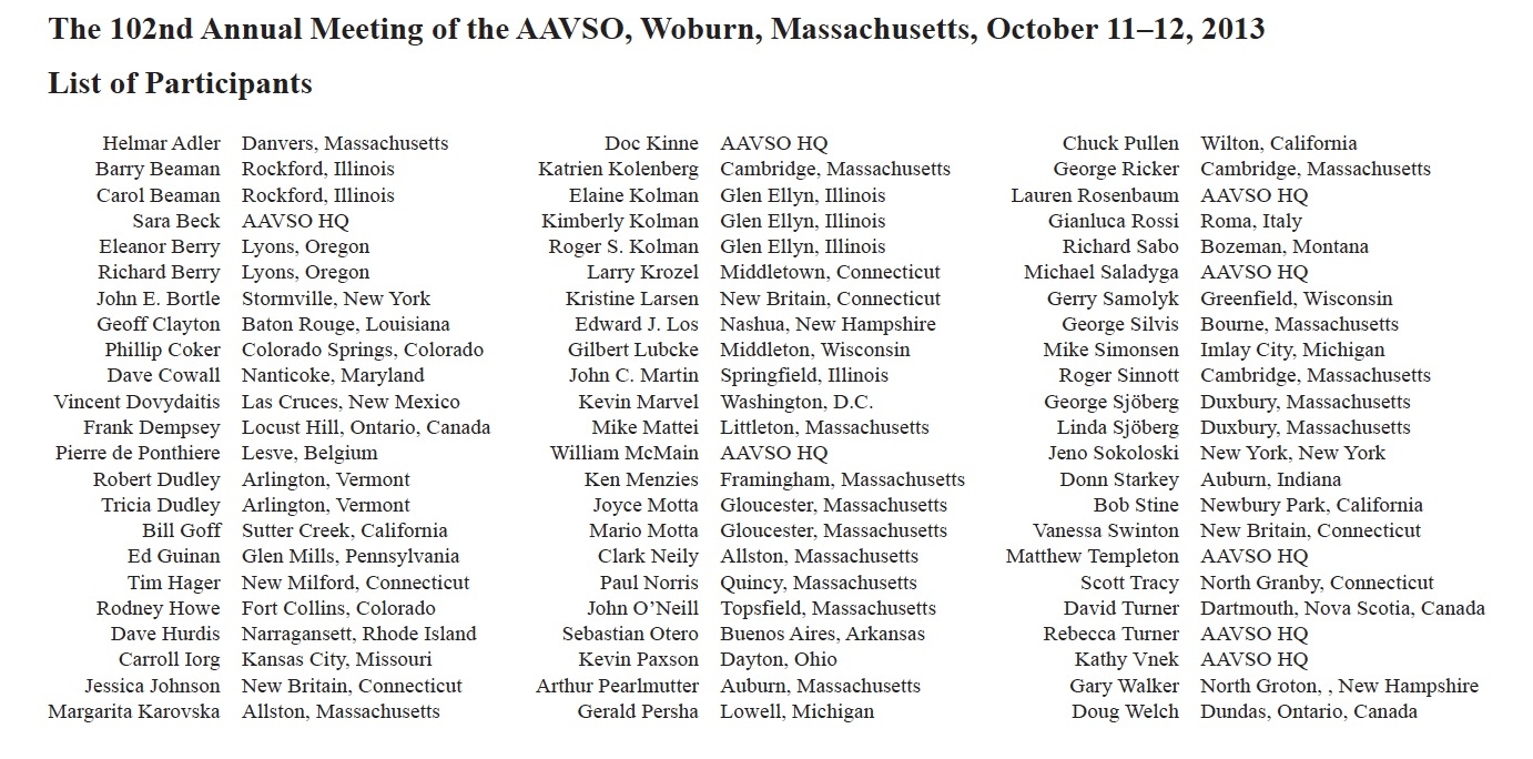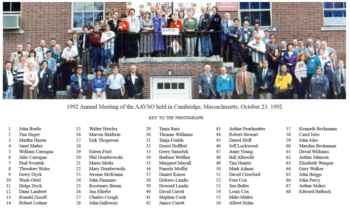1991 Annual Meeting at AAVSO Headquarters and Harvard College Observatory, Cambridge, Massachusetts key |