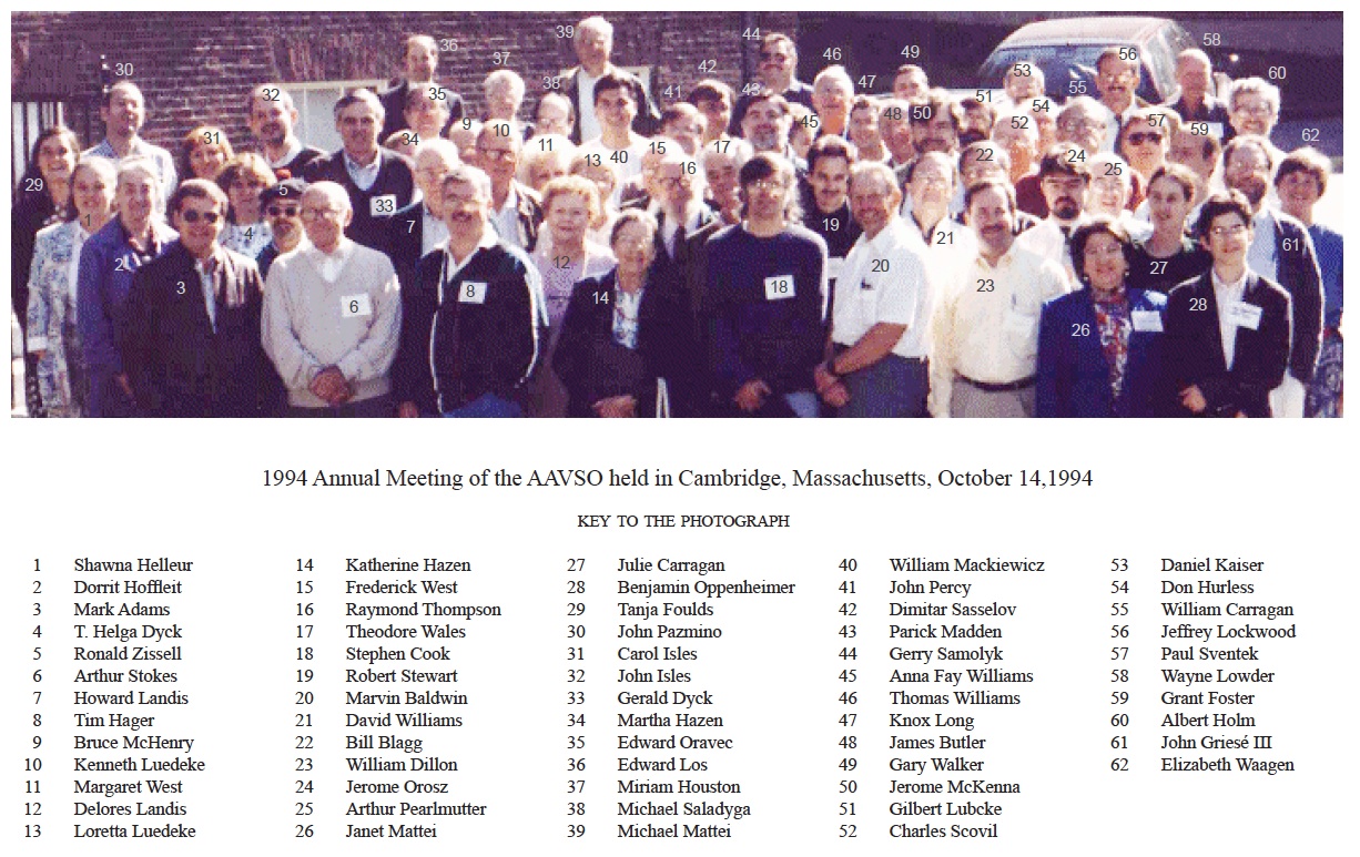 1994 Annual Meeting at AAVSO Headquarters and Harvard College Observatory, Cambridge, Massachusetts key |
