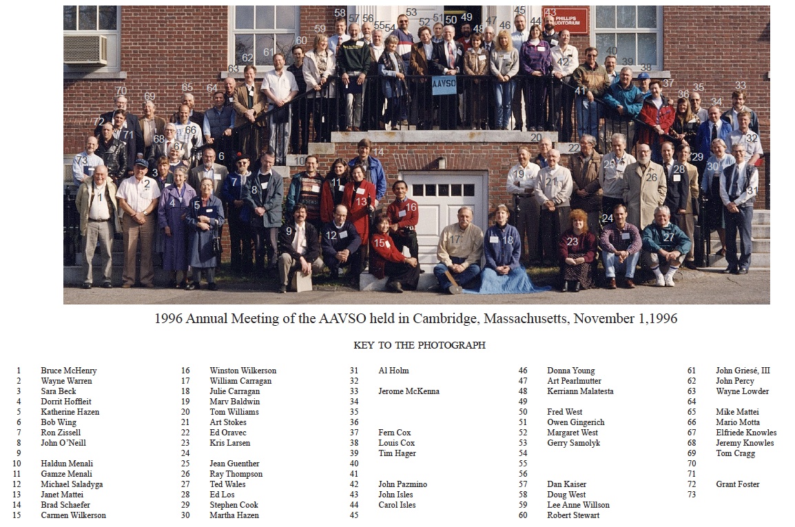 1996 Annual Meeting at AAVSO Headquarters and Harvard College Observatory,Cambridge, Massachusetts key |