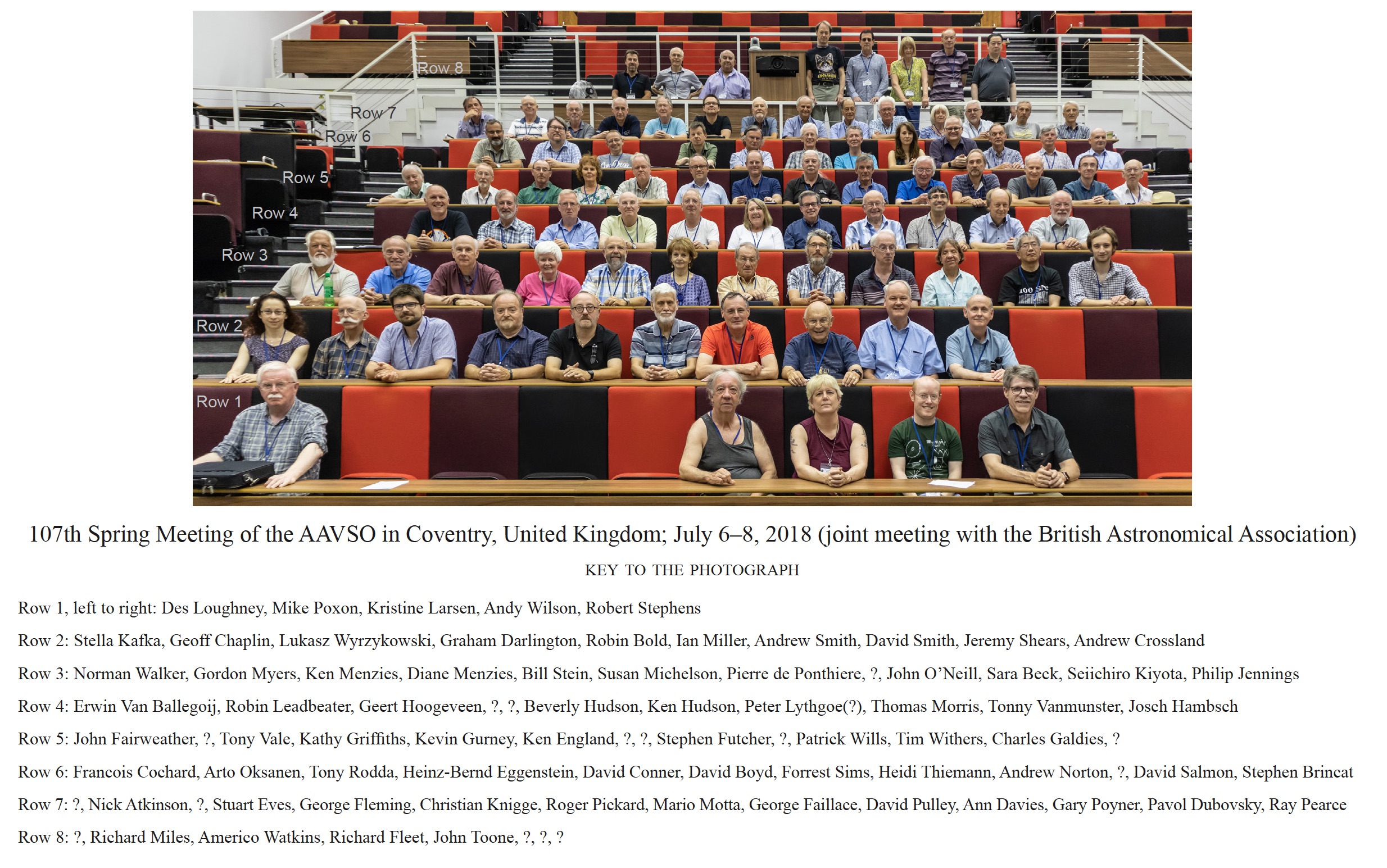 2018 BAA-AAVSO Joint Meeting on Variable Stars, University of Warwick, Coventry, UK (AAVSO Spring Meeting) key