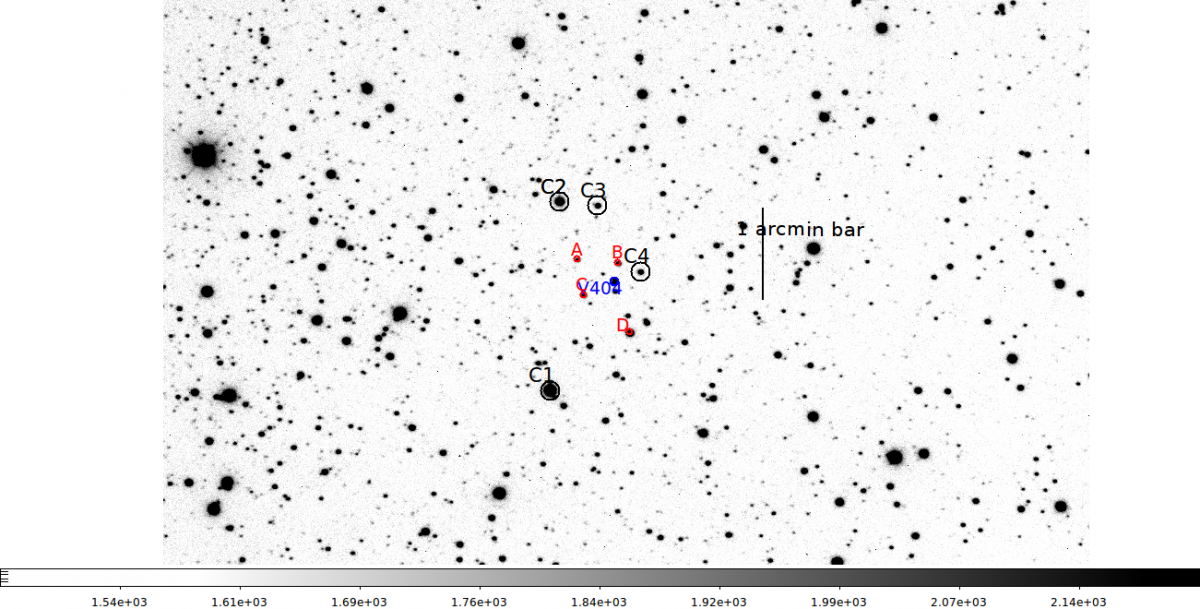Two finding charts (links below) have been prepared by the astronomers with stars that should be used for calibration. Please make sure to calibrate using the magnitudes in the list below.