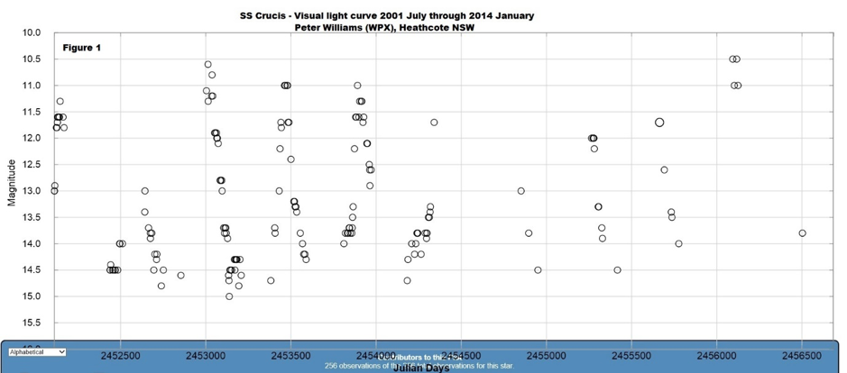 The intention was to publish the results for SS Cru and other similar “unloved” southern Miras through either the Variable Stars South of the RASNZ or the AAVSO, thus continuing the series of results for stars previously published.