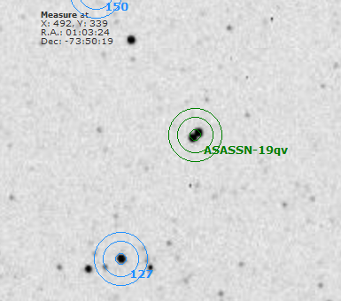 I ran the V image. The stars are actually almost completely separated, but not quite. I reduced the aperture to a radius of 2 pix. Smaller than I normally would use but not completely unreasonable. I increased the gap to include the companion completely and keep it out of the sky annulus. I used all aavso comps (>SNR=20) except the faintest. The V magnitude is that reported for the right most image in the attached screen shot. I then moved the aperture in pixel adu mode just a little by adjusting the position numbers. That magnitude is the middle image. I then used the pix/adu mode to move the aperture with the adjustment arrows. That moved the aperture visually a bit to far to the lower left and includes too much background. That magnitude is from the left most image and is clearly fainter than it should be?