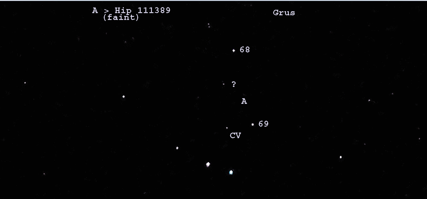 I have 2 photos of Grus in the area next to CV Gru; they were taken 2 months appart. Both photos were not mine; they were taken by a friend .