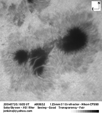 between 2030 and 2100 UT on October 30, 03. | StarHOC 80mm refractor with a white light mylar solar filter Sony MVC-FD95 digital camera. | |