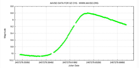 Figure 5. V-band observations of a maximum of the RR Lyrae star XZ Cygni, based upon data from the AAVSO International Database.