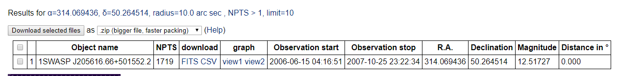 While querying SuperWASP data (https://wasp.cerit-sc.cz/), it allows downloading data in either FITS and or CSV formats (see picture attached). However, the data in different formats differ (slightly).