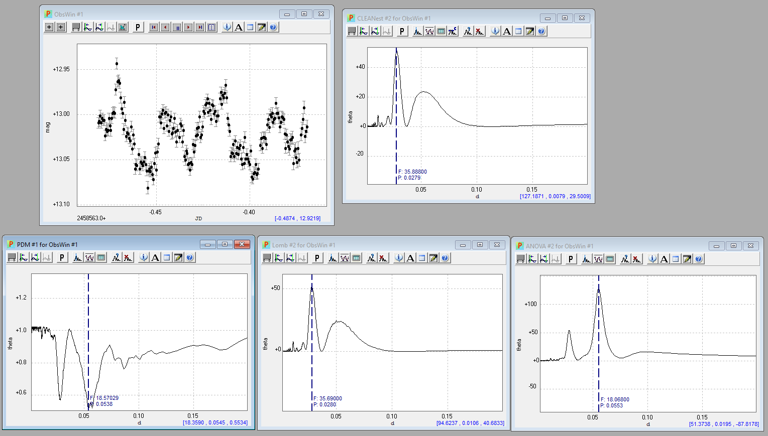 I analyzed the images using all the comps in my 12' x 18' FOV and just using the brightest 3 comps. The error ranges are much better - under 0.05 mags and there appears to be the start of low amplitude periodicity seen by other observers.