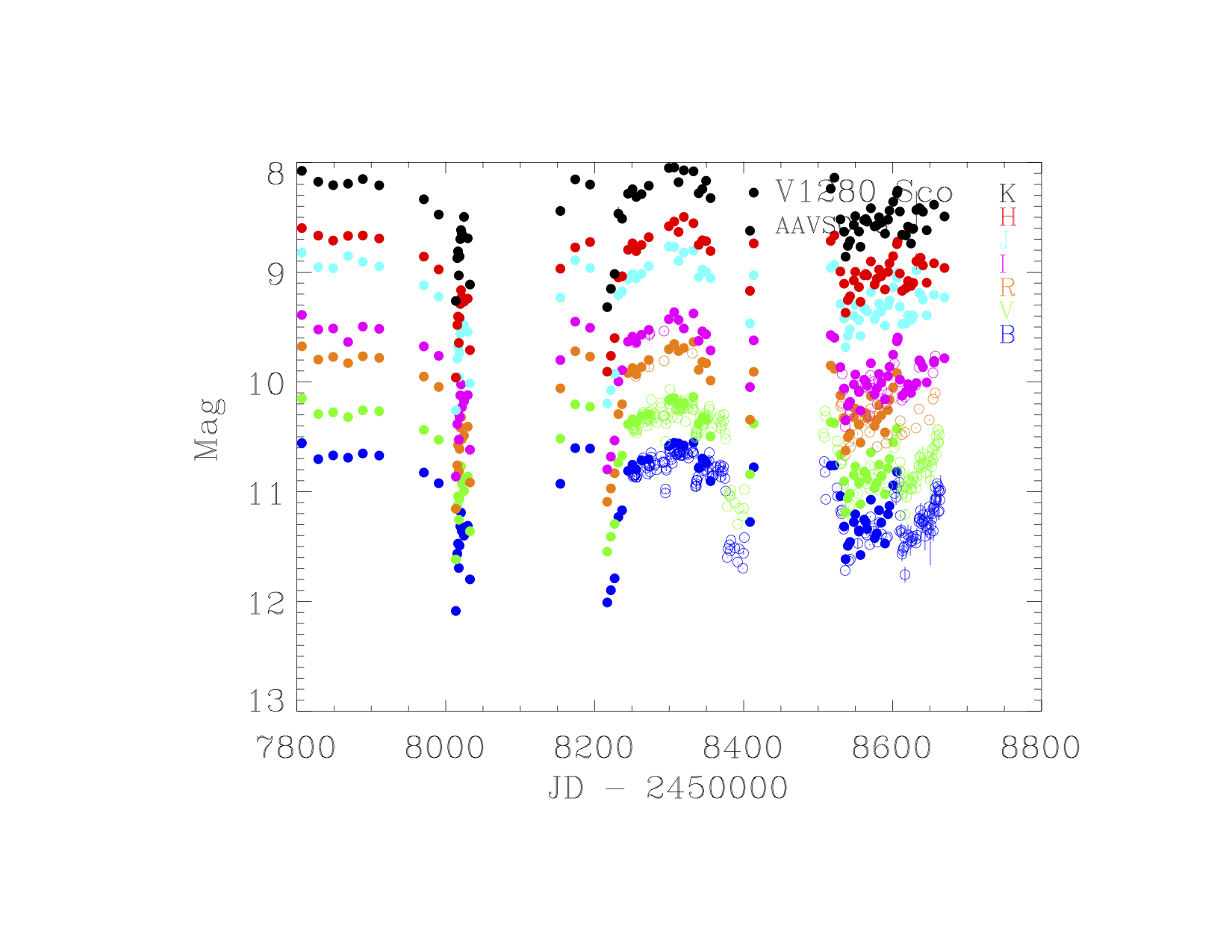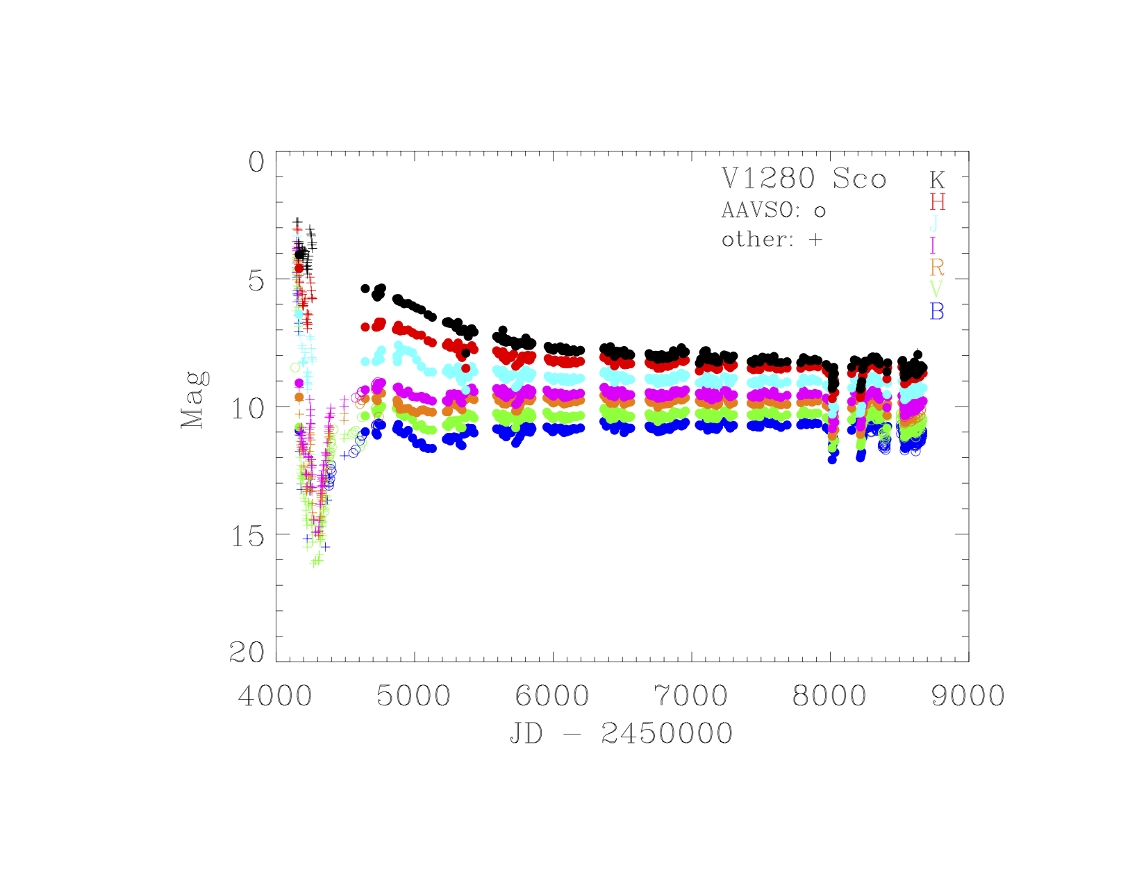 Figure 1: The full optical/near-IR light curve of V1280 Sco.