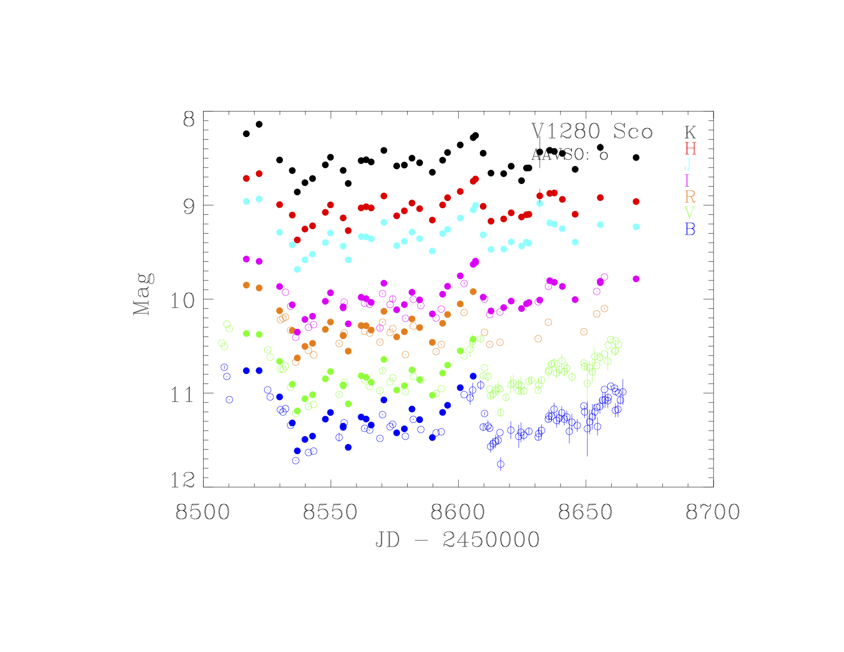 Figure 2: The optical/near-IR light curve of V1280 Sco since JD 7800.
