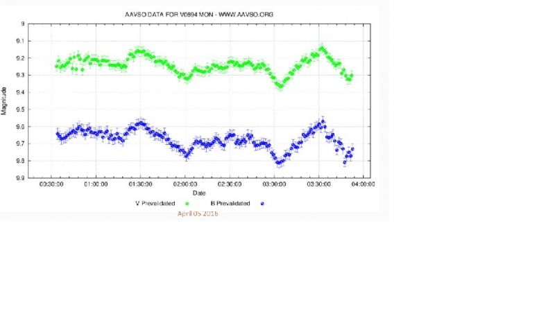 I imaged V694 Mon last night, it was fairly 'quiet', the Blue data ranged between 9.9 - 10.1.