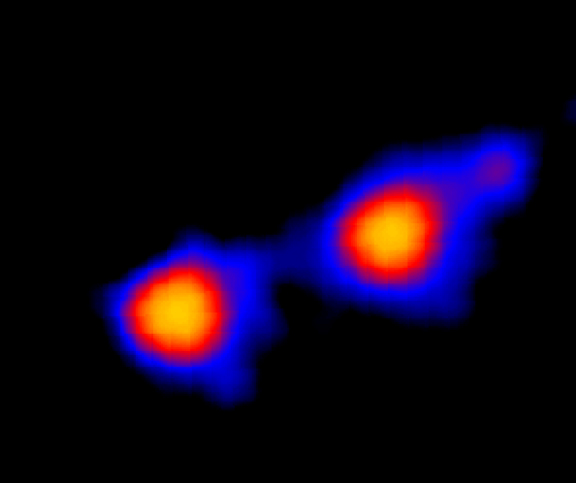 One of the most exciting latest Mira findings can be found in a paper dedicated to the memory of Janet Mattei, AAVSO Director from 1973-2004. Here, Karovska et al. (2005) report on the discovery of X-ray emission from Mira. What makes this news so fascinating is that while X-rays are expected to be produced by the white dwarf's hot accretion disk, astronomers found a flare of X-ray emission separate from the accretion disk that was coming from Mira A itself -- an event that has never before seen in any AGB star, let alone Mira! This type of activity signifies that the system is undergoing some impressive changes. Although astronomers are not sure exactly where the flare may have originated from, they theorize that such an event could be the result of mass ejection or a jet. Ultimately, it is thought that the flare may have long-term consequences on the system.