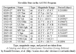 | A table of nova-like stars in the AAVSO observing program. Click image to enlarge. |