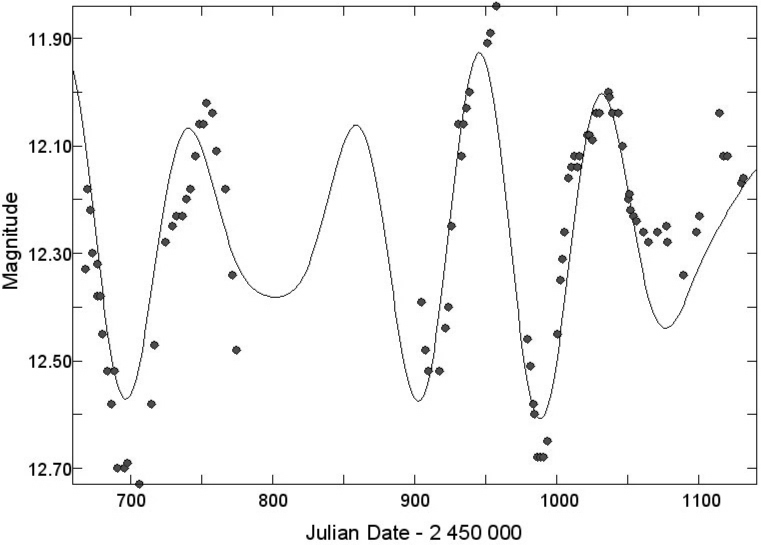 Demers and Barry Madore (1974) reported further photoelectric and photographic observations which were consistent with a period of about 50 days and an amplitude of 0.4 magnitude. There was some suggestion that the mean V magnitude of the star might be brightening: 12.59 in 1968, 12.52 in 1969, and 12.45 in 1973, but the data were few, and the secular increase was small, compared with the pulsation amplitude. But then the star languished again.