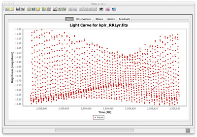 Another interesting exercise is the 5-Star Data Analysis Tutorial (revised in June 2014 by Paul York). This document will introduce you to VStar by walking you through some of the concepts of basic data analysis. We recommend it as the first place to stop for those new to light curves and variable star data analysis. More help links can be found below.