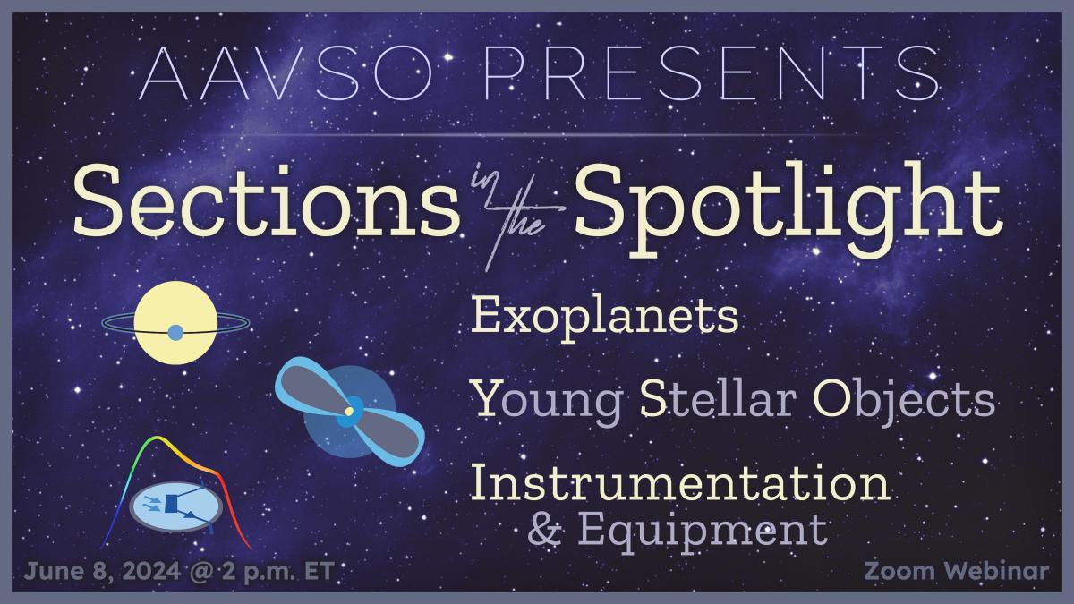 This webinar will feature brief talks from three AAVSO Sections: Exoplanet, Young Stellar Objects, and Instrumentation & Equipment.