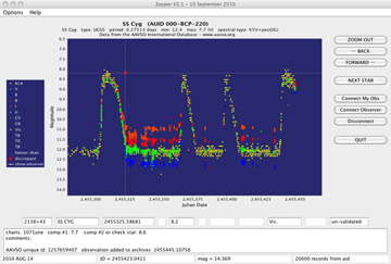 A new version of Zapper has just been released! Actually, not a lot has changed but I did want to let everyone know that Zapper will no longer display differential magnitudes or unreduced step-magnitudes (which appear as 0.0 magnitude observations in the AAVSO International Database). To get this latest version please go here: http://www.aavso.org/zapper and download it. This page will also describe what Zapper is and how to use it for those of you who have no idea what I am talking about!